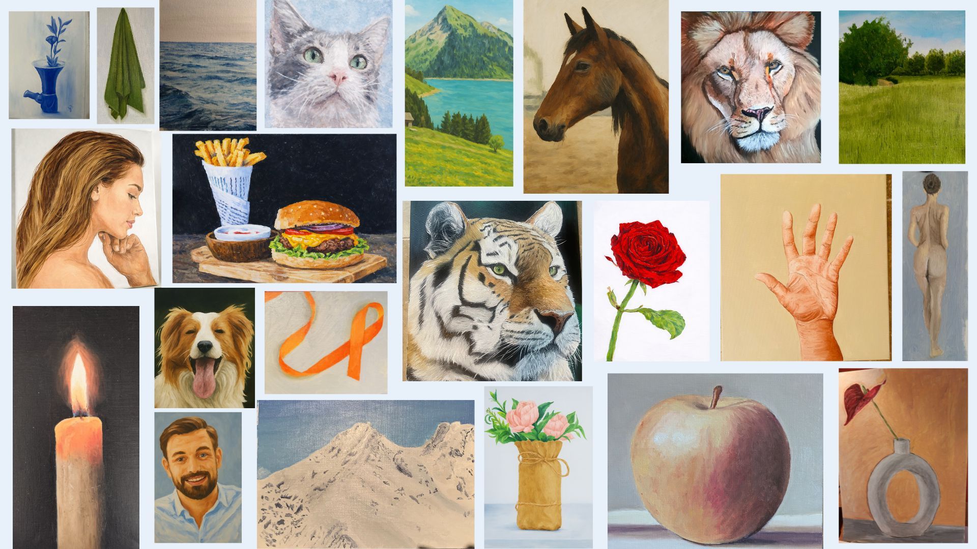 As a result, you can follow the entire course using acrylic paint and progress with the same fundamentals, just as many students already do with excellent results.