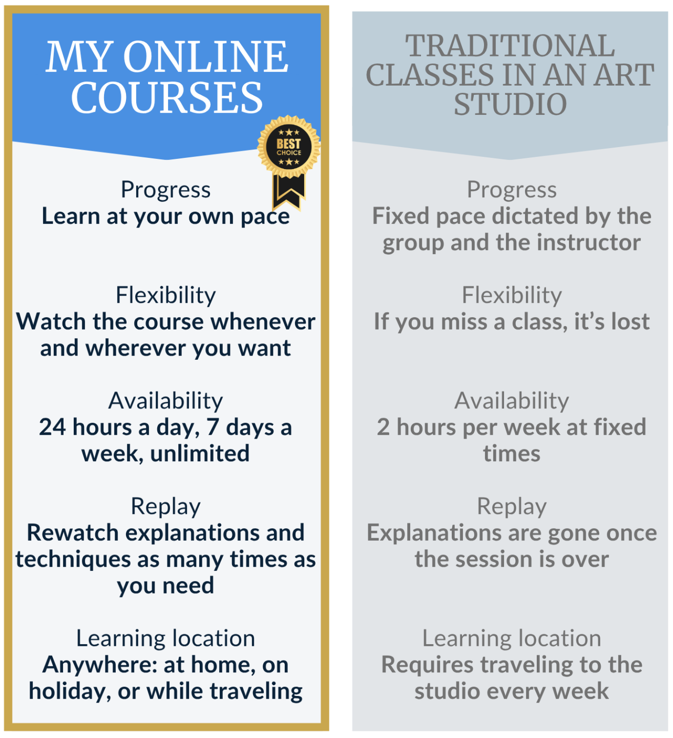 As a result, you can follow the entire course using acrylic paint and progress with the same fundamentals, just as many students already do with excellent results.